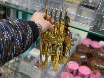 Golden Cutlery Set with Stand