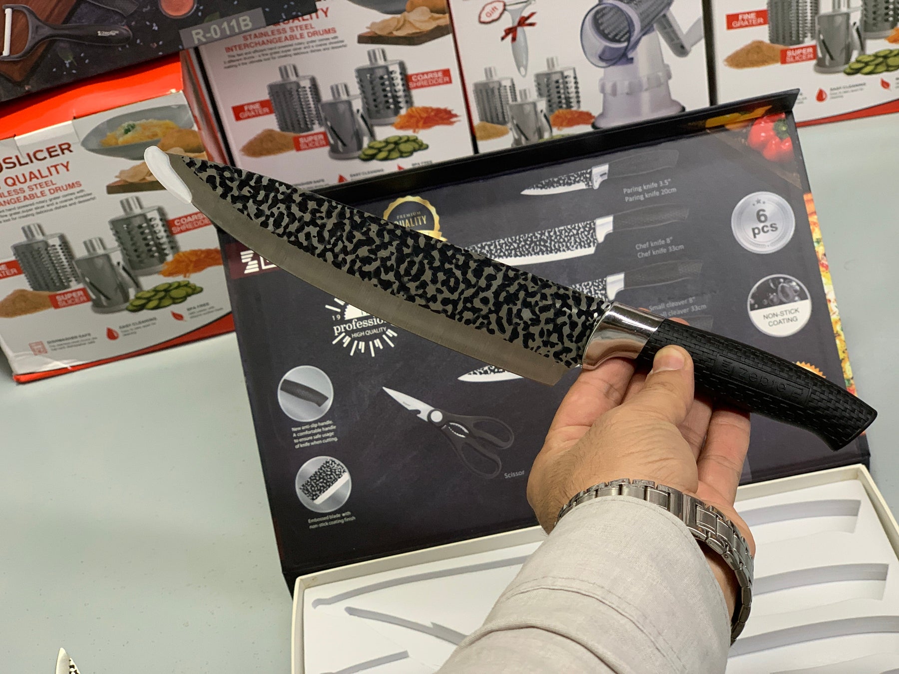 [{"id":44927959367737,"title":"Default Title","option1":"Default Title","option2":null,"option3":null,"sku":null,"requires_shipping":true,"taxable":false,"featured_image":{"id":37359650308153,"product_id":8038400786489,"position":1,"created_at":"2025-10-05T18:04:53+05:00","updated_at":"2025-10-05T18:04:53+05:00","alt":null,"width":2048,"height":2048,"src":"\/\/uniqueimport.store\/cdn\/shop\/files\/Yellow_PurpleSimpleFacebookProfilePicture_40_1aa7b3b6-8551-4890-b20b-6364d48f382e.png?v=1759669493","variant_ids":[44927959367737]},"available":true,"name":"Dotted Pattern Zepter Knife Set 6 Pieces For Kitchen Use","public_title":null,"options":["Default Title"],"price":310000,"weight":0,"compare_at_price":null,"inventory_management":null,"barcode":"","featured_media":{"alt":null,"id":28788735606841,"position":1,"preview_image":{"aspect_ratio":1.0,"height":2048,"width":2048,"src":"\/\/uniqueimport.store\/cdn\/shop\/files\/Yellow_PurpleSimpleFacebookProfilePicture_40_1aa7b3b6-8551-4890-b20b-6364d48f382e.png?v=1759669493"}},"requires_selling_plan":false,"selling_plan_allocations":[]}]