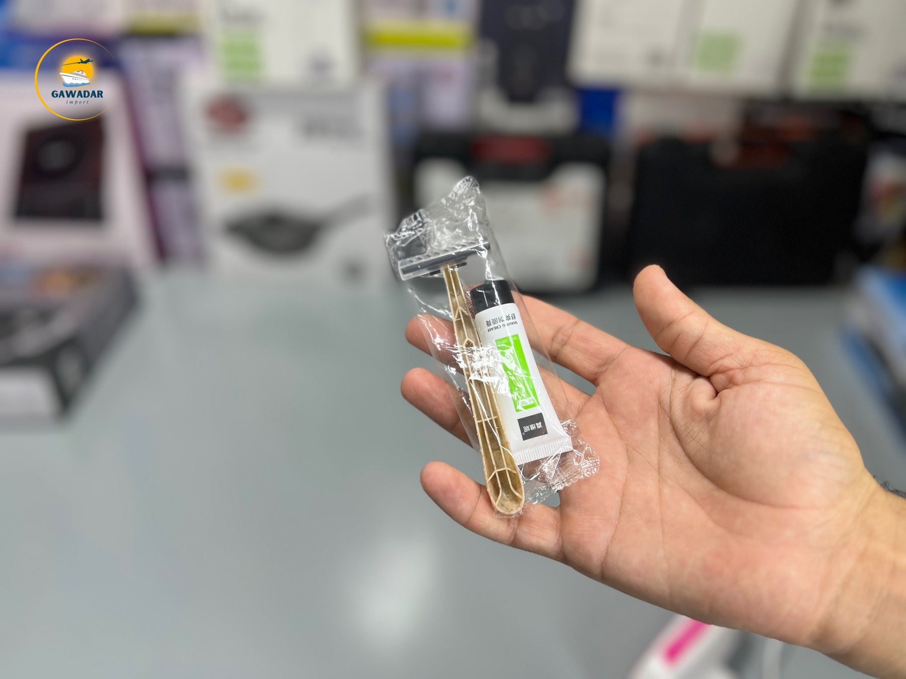There are a razer and shave cream with it.